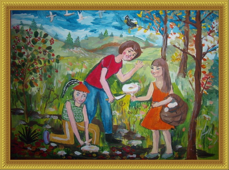 Третье место -Удачный грибной день Мальковская Таня, педагог Гизатова Назира Назымовна. Детская художественная школа им. М.Х.Хаертдинова, р-н Лениногорск