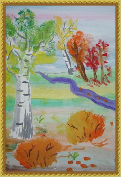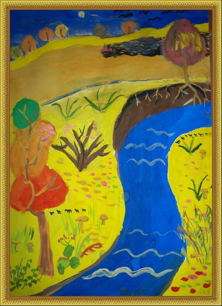 Второе место -Осенняя речка Ганиева Лия, педагог Гизатова Назира Назымовна. Детская художественная школа им. М.Х.Хаертдинова, р-н Лениногорск