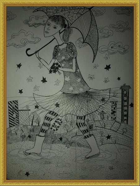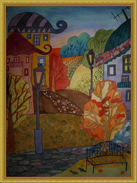 Победитель -Осень шагает по городу Уламасова Элина, педагог Бутина Екатерина Александровна. Детская художественная школа им. М.Х.Хаертдинова, г. Лениногорск