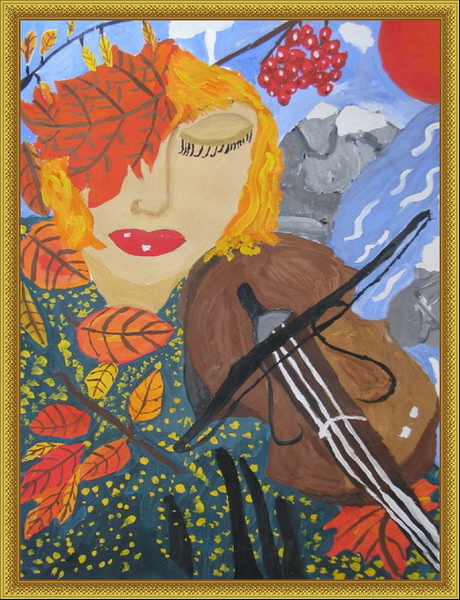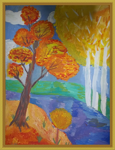Второе место -Осень Мещерякова Валерия, педагог Пивцаева Нэлла Алексеевна. Средняя общеобразовательная школа №14, Ставропольский край, станица Новотроицкая