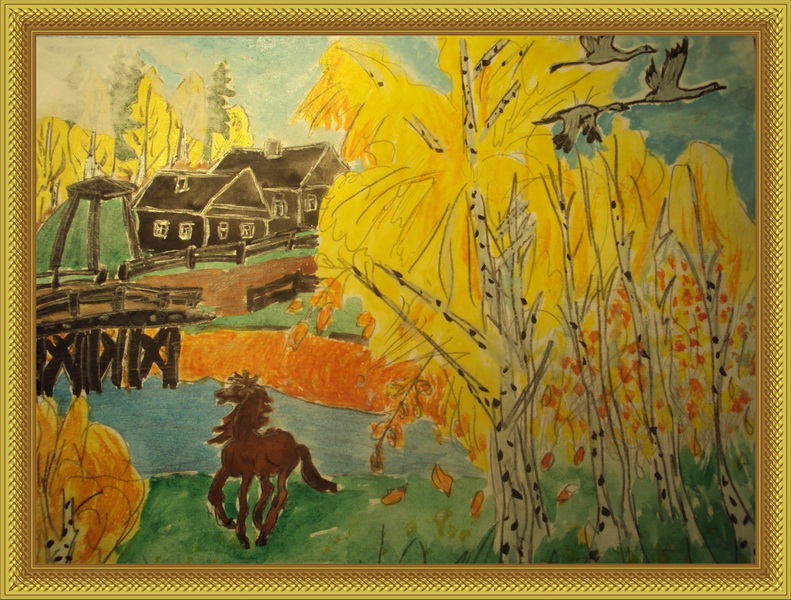 Победитель -Осень в деревне Скороходова Татьяна, педагог Шустрова Любовь Васильевна. Средняя общеобразовательная школа, Новгородская область, д. Долгое