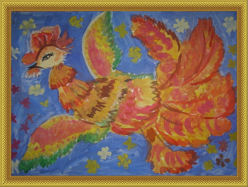 Третье место -Птица-осень Пупкова Даша, педагог Актаева Наталья Анатольевна. Детская художественная школа, Свердловская область, г. Верхняя Пышма