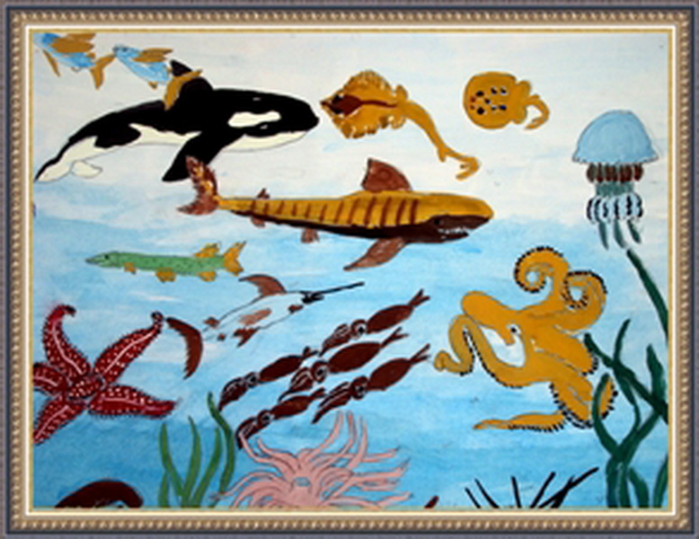 Третье место -Подводный мир Кабарова Елизавета, Основная общеобразовательная школа №5, г. Бор