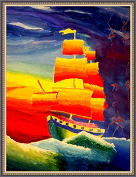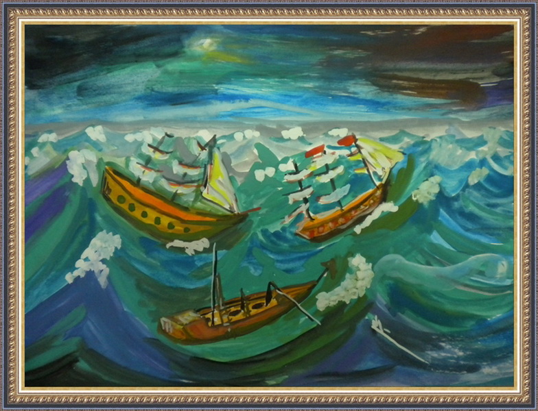 Второе место -Парусник в море во время грозы Зажигина Ирина, Дом детского творчества, Республика Коми, г. Печора