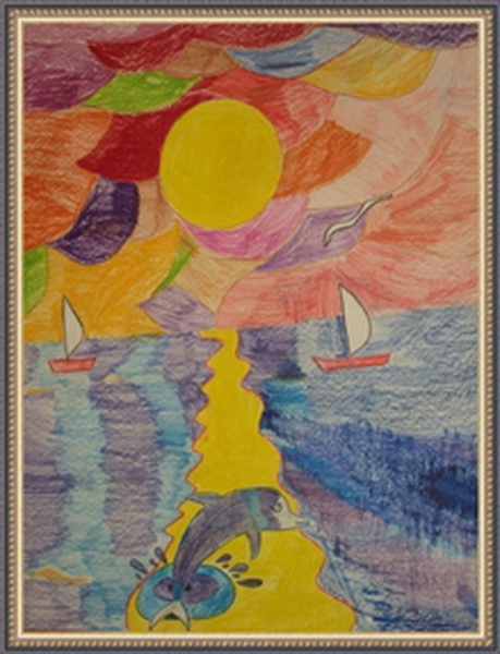 Победитель -Закат на море с дельфином Терпугова Вероника, Дом детского творчества, Республика Коми, г. Печора