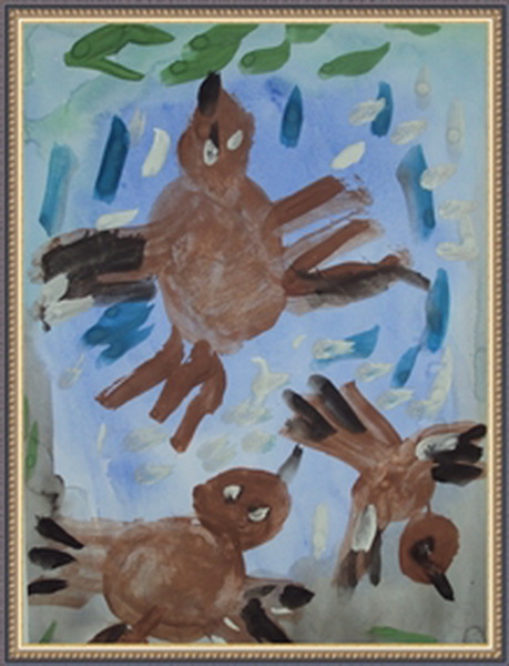 Второе место -Воробьи купаются Копайгора Серёжа, Детский сад №80 "Берёзка", Ростовская область, г. Таганрог