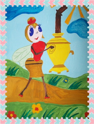 Третье место -Пошла муха на базар и купила самовар! Казаковцева Маша, педагог Авдеева Елена Владимировна. Детская художественная школа, г.Вятские Поляны
