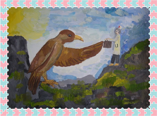 Третье место -Орёл спешит на помощь Айболиту Петров Андрей, педагог Шох Вера Алексеевна. Детская художественная школа, п.Новоангарск