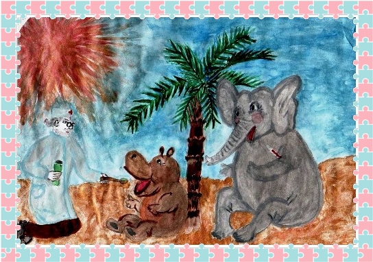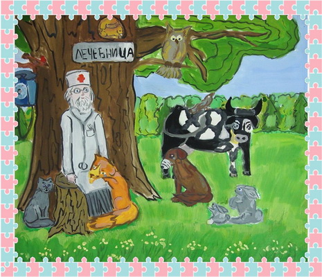 Третье место -Доктор Айболит Настя Дребезгова, педагог Лепешенкова Светлана Викторовна. Детская художественная школа, г.Щёлково