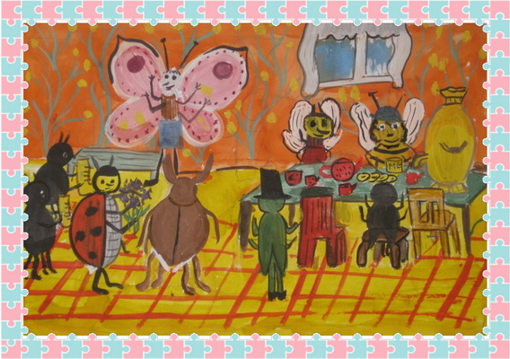 Третье место -А букашки по 3 чашки Ткаченко Аня, педагог Волочаева Ирина Петровна. Детская школа искусств, п.Медвежьи Озёра