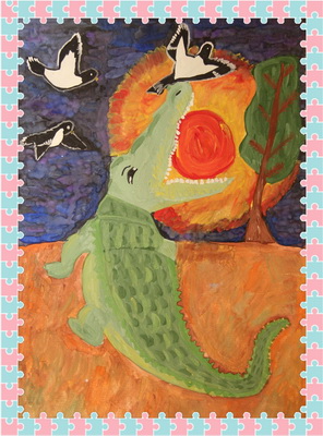 Третье место -Крокодил и солнце Аникин Иван, педагог Герасимова Галина Ивановна. Средняя общеобразовательная школа №12, г.Жуковский