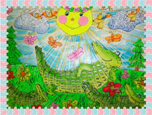 Третье место -Крокодильчики любуются солнышком Ветохина Ева, педагог Тимерьянова Эльза Айратовна. Дом детского творчества "им. Саши Ковалёва", г.Североморск