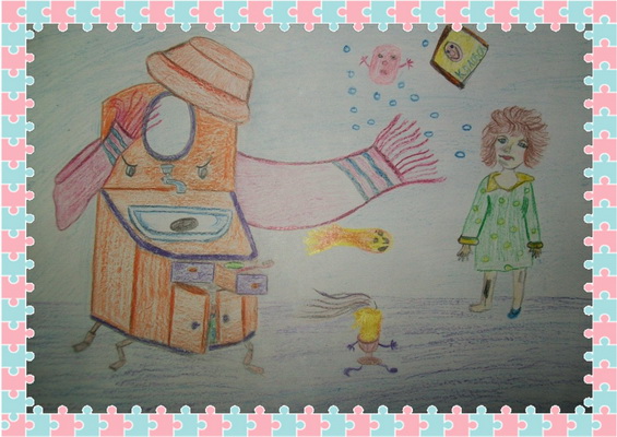 Второе место -Грязнуля мальчик и Мойдодыр Александра Кучерявенко, педагог Ольга Валентиновна Пятакова. Дом детского творчества, г.Новочеркасск