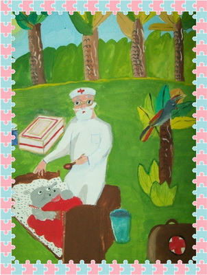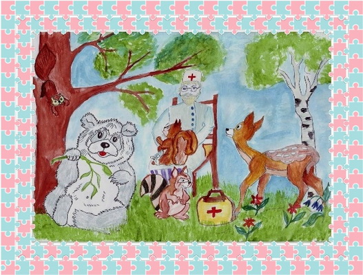 Третье место -Добрый доктор Айболит, он под деревом сидит Толмачев Даниил, педагог Чаговец Анна Витальевна. Детская художественная школа, п.Солнечнодольск