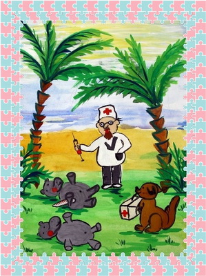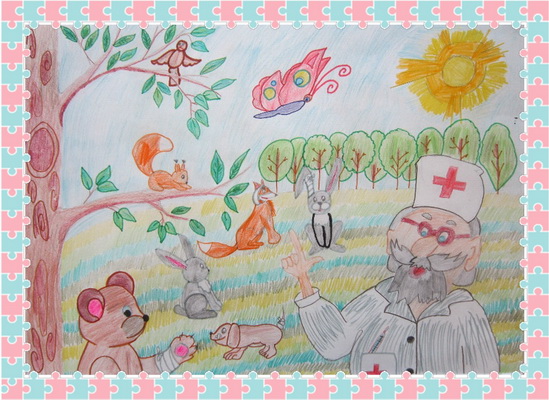 Победитель -Айболит спешит на помощь Смоленцева Валерия, педагог Хирная Яна Анатольевна. Детский сад "Сказка", п.Уренгой