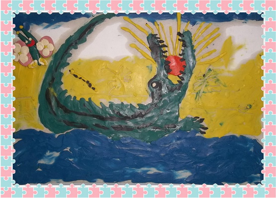 Второе место -Зубастый крокодил, солнце в небе проглотил Царева Вероника, педагог Дыева Галина Анатольевна. Детский сад №31 "Журавушка", Московская область, г.Серпухов