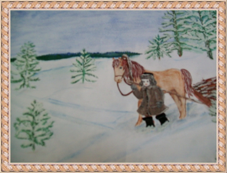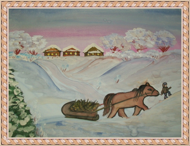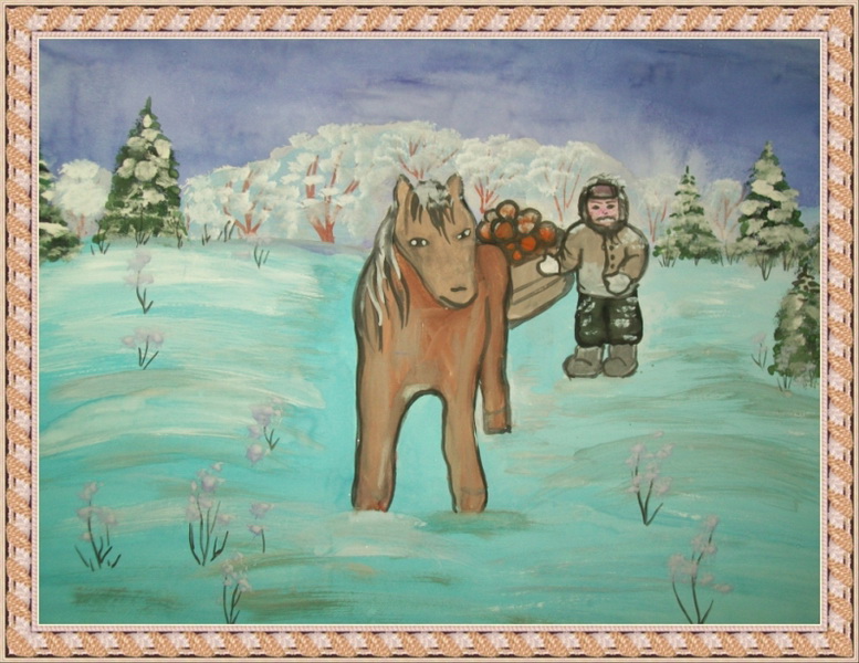 Второе место -Лошадка, везущая хворосту воз Жданова Мария, Детская школа искусств, г. Чердынь