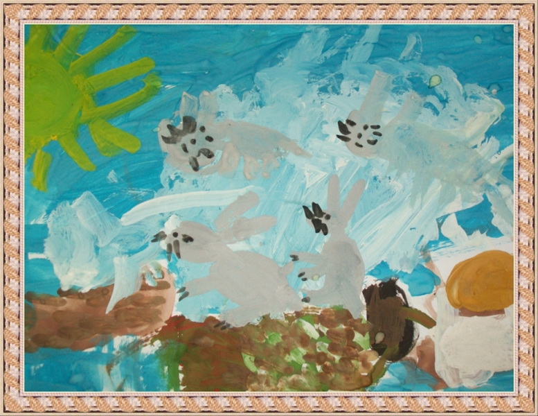 Второе место -Я кормлю своих зайчат Зарюбина Алёна. Михайлова Марианна, Детский сад "Солнышко", п. Каменск