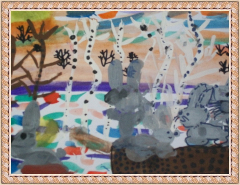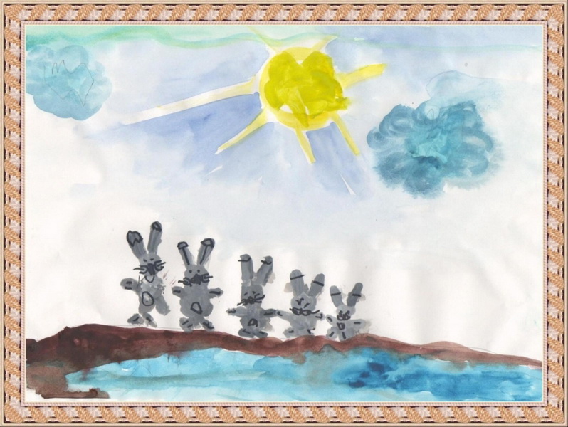 Третье место -Зайчата плывут на бревне Карташов Максим, Детский сад "Гармония", Иркутская область, г. Тулун