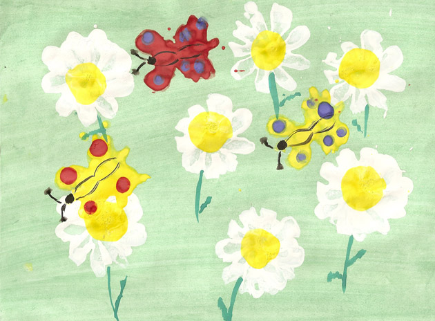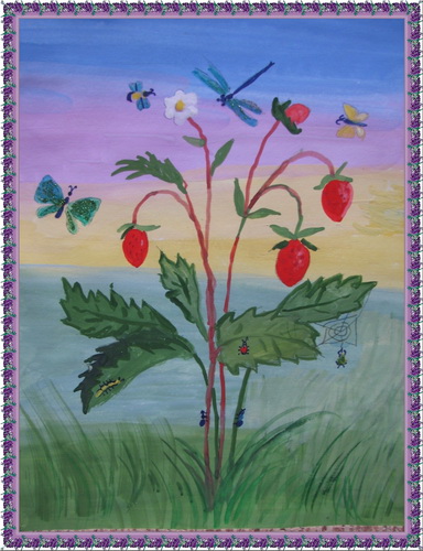 Второе место -Бабочки на клубнике Карпичева Полина, Детский сад №45 "Солнышко", г. Мытищи