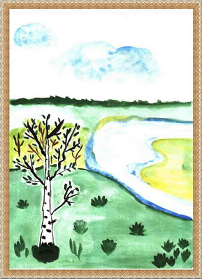 Второе место -Летний пейзаж Донецкий Женя, педагог Акиленко Лариса Михайловна. Детский сад "Берёзка", Ханты-Мансийский автономный округ - Югра, г.Белоярский