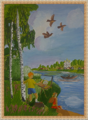 Третье место -Летом на реке Абдулкеримов Абдулкерим, Абдулкеримова Пери, педагог Наконечная Татьяна Ивановна. Средняя общеобразовательная школа №12, Московская область, г.Красногорск