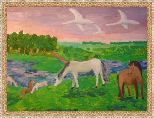 Третье место -Лето. Вечерняя встреча. Привезенцева Дуня, педагог Тихонова Наталья Алексеевна. Центр детского творчества "Искатель", Московская область, г.Лыткарино