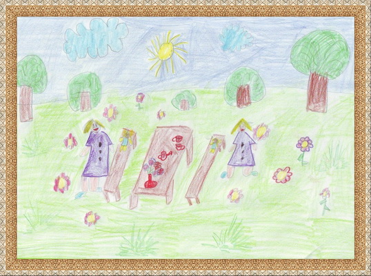Второе место -Летний пикник Шокина Елизавета, педагог Филиппова Оксана Викторовна. Дворец культуры "им. Волкова", Московская область, г.Дрезна