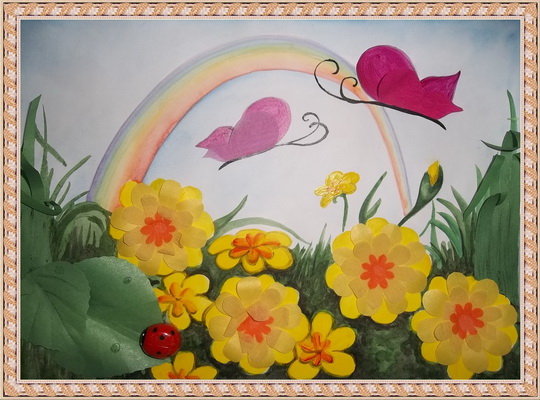 Третье место -Эти летние дожди, Эти радуги идуги Коллективная работа, педагог Шорникова Евгения Владимировна, Шорникова Вера Васильевна. Центр внешкольной работы, Московская область, п.Оболенск