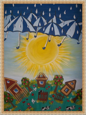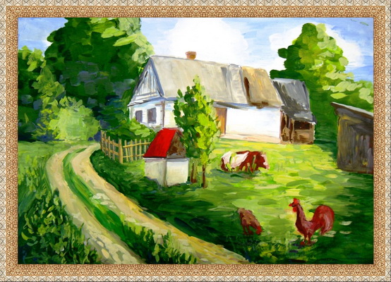 Второе место -В деревне Петренко Анастасия, педагог Прокопенко Любовь Викторовна. Художественная школа "Художественная школа в составе "Гимназия №7"", Оренбургская область, г.Оренбург