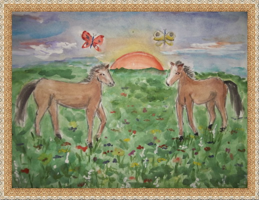 Победитель -Прогулка по лугу Хусаинова Камиля, педагог Шарафутдинова Гюзель Тахировна, Шайхразиева Наиля Абылфатиховна. Детская художественная школа №2, Республика Татарстан, г.Набережные Челны