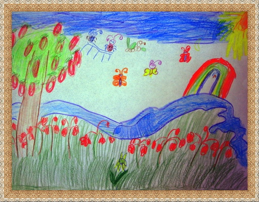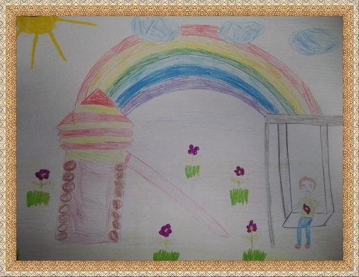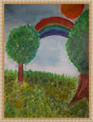 Второе место -Летний луг с радугой Верещагина Настя, педагог Смыслова Виктория Александровна. Детский сад №37 "Звёздочка", Республика Саха (Якутия), г.Удачный