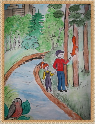 Третье место -Белка в лесу Кожевникова Валерия, педагог Низамиева Эльмира Робертовна. Средняя общеобразовательная школа, Республика Татарстан, п.Круглое поле