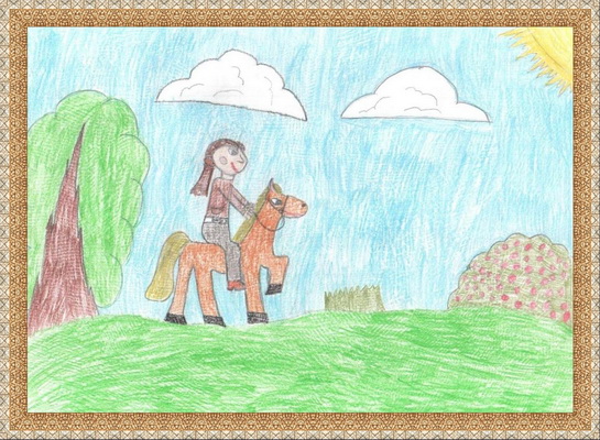 Третье место -Прогулка на лошадях. Сафиуллина Регина, педагог Назарова Светлана Геннадьевна. Детская художественная школа №2, Республика Татарстан, г.Набережные Челны