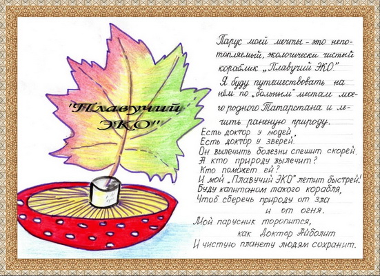 Третье место -Плавучий Эко Кибец Ярослав, педагог Тычкина Ирина Алексеевна. Лицей №9 "им. А.С.Пушкина", Республика Татарстан, г.Зеленодольск