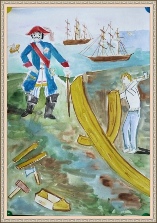 Третье место -"Российскому флоту быть!"- Петр 1 Фирсова Юлия, педагог Овчинникова Алевтина Викторовна . Средняя общеобразовательная школа №33, г.Астрахань
