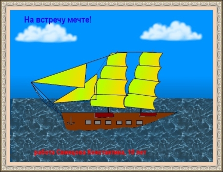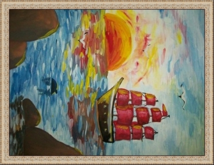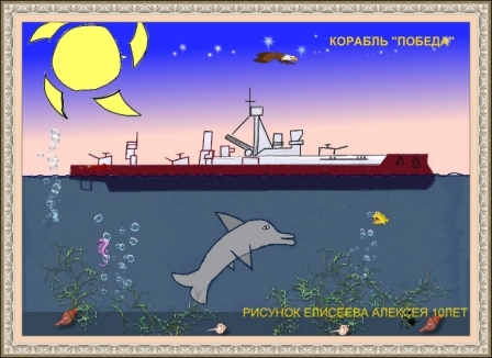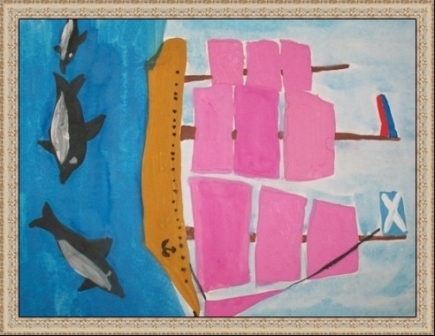 Третье место -Корабль и дельфины Столярова Алена, педагог Махова Елена Александровна. Средняя общеобразовательная школа №12, г.Жуковский