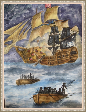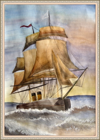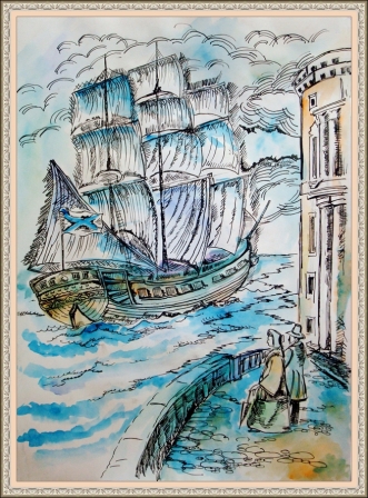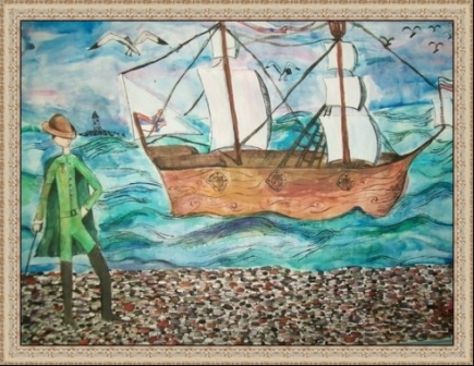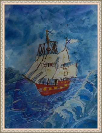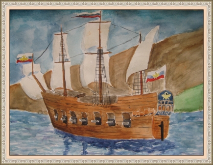 Второе место -Экспедиция Витуса Беринга на "Святом павле" Шевченко Ульяна, педагог Шикалова Татьяна Ивановна. Детская школа искусств, г.Ступино