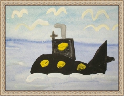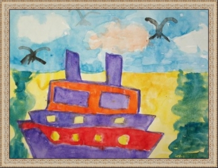Третье место -Пароход на море Щербакова Арина, педагог Исхакова Ольга Николаевна. Детский сад №45 "Сказка", п.Развилка