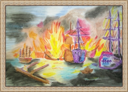 Второе место -Сражение при Чесме Ковалёва Евгения, педагог Михайлова Галина Витальевна. Лицей "Школа искусств", г.Талдом
