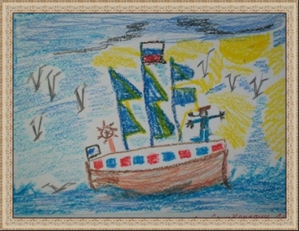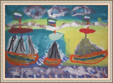 Третье место -Флот плывет к родной земле… Королева Алина, педагог Гайнанова Лидия Флоридовна. Детский сад №27 "Росинка", г.Ступино