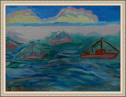 Второе место -Корабли на рейде Белова Алина, педагог Инашвили Анна Васильевна. Детский сад №48 "Яблонька", г.Подольск