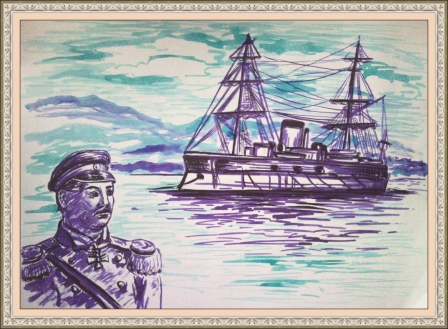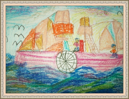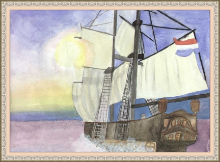 Третье место -Кругосветное плавание фрегата "Крейсер" Фоменко Ксения, педагог Ленькова Алла Николаевна. Детская художественная школа, г.Батайск