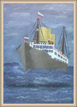 Второе место -Пароход-фрегат "Владимир" Гондусова Алина, педагог Власенко Людмила Антоновна. Детская художественная школа "им. М.И.Черткова", п.Чертково