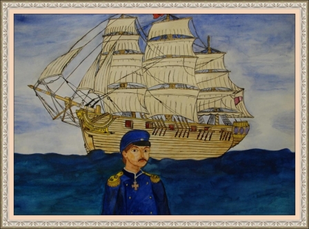 Победитель -Адмирал П.С. Нахимов и юнга Волохова Лада, педагог Сидорова Елена Борисовна. Детская художественная школа "им. В.Г.Перова", г.Тобольск