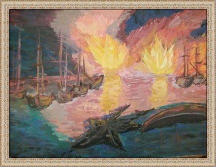 Второе место -Морская атака Шафрановский Сергей, педагог Ушанева Ирина Евгеньевна. Детская художественная школа "им. Н.В.Овечкина", Ростовская область, г.Новошахтинск