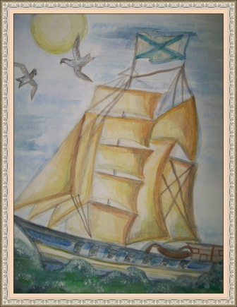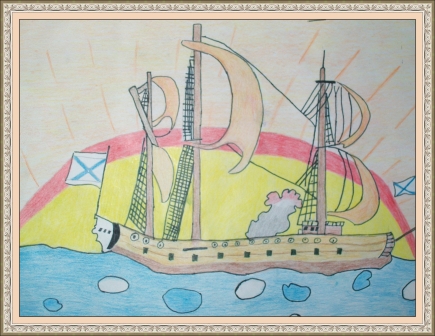 Третье место -Флот плывет к родной земле… Машковцева Нина, педагог Хирная Яна Анатольевна. Детский сад "Сказка", Ямало-Ненецкий автономный округ, п.Уренгой