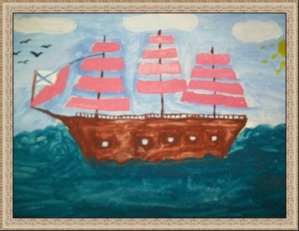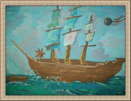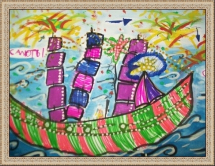 Третье место -Торжественное отправление в море Романенко Максим, соавтор Романенко Татьяна Аркадьевна, педагог Фоминых Ирина Леонидовна. Детский сад №90 "Незабудка", Ханты-Мансийский автономный округ - Югра, г.Сургут