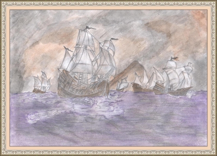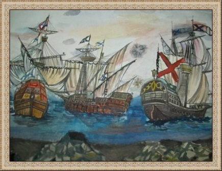 Второе место -Так начинался Российский флот Орлова Яна, педагог Назарова Тамара Валерьевна. Центр эстетического воспитания "Детская картинная галерея", Челябинская область, г.Магнитогорск