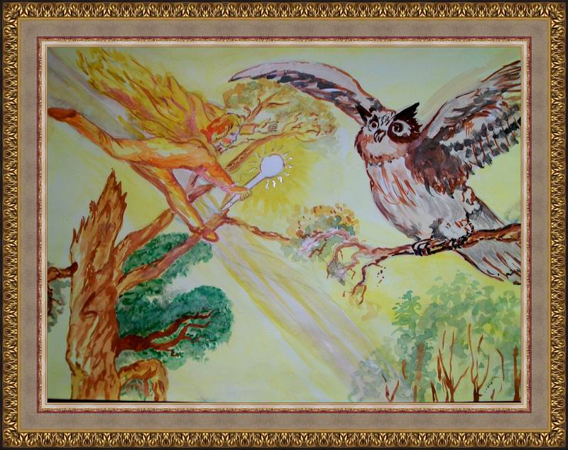 Второе место - Сова и солнечный лучик Филатов Евгений, Детский сад № 205, г. Оренбург